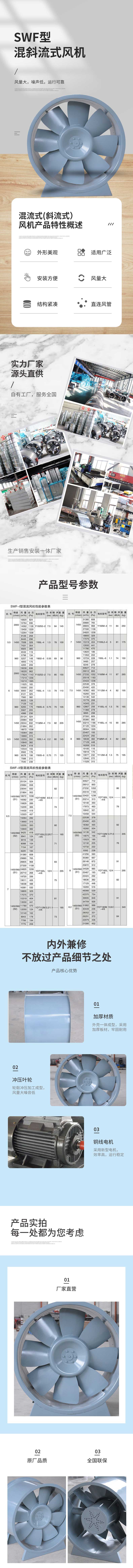 混流(斜流)風機,風壓係數比軸流風機高,流量係數比離心(xīn)風機大,用在風壓和流量都“不大不小”的場合。它填補了軸流風機和離心風(fēng)機之間的空白,同(tóng)時具備安裝簡單方便的特點。