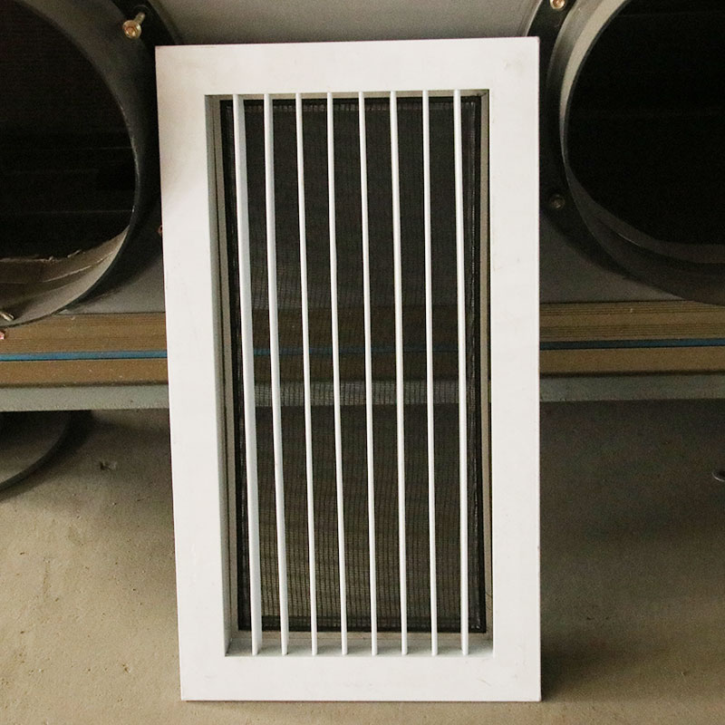 單層可調百葉風口常用於管道中的(de)吸、送風用,同時可根據實際情況配上人(rén)字閘(多葉對開調(diào)節閥),用(yòng)以控製風量或安裝鋁(lǚ)合金過(guò)濾器,進行配套使用。